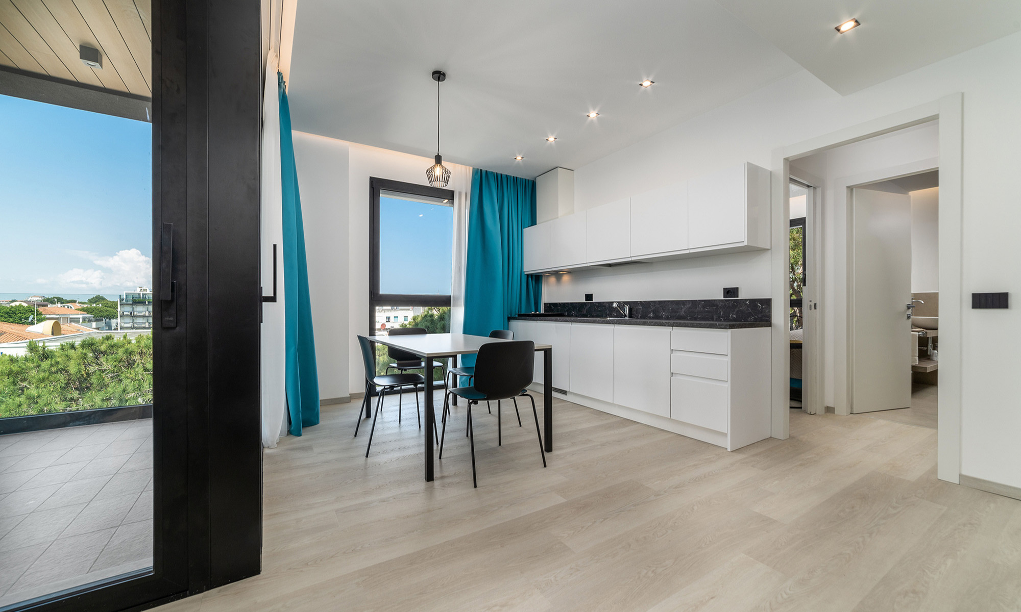 A 8 minuti a piedi da Viale Ceccarini, i nostri aparthotel a Riccione offrono ambienti ampi, confortevoli e completamente attrezzati, ideali per chi viaggia per lavoro o per chi desidera un soggiorno flessibile e autonomo. Situati di fronte all’hotel, combinano privacy e indipendenza con la possibilità di usufruire di tutti i servizi esclusivi della struttura, garantendo la massima comodità durante la permanenza.